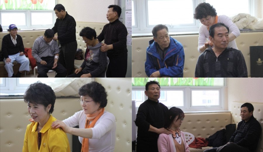 프로폴리스 글루코사민크림으로 맛사지를 해주고 다과를 나누며 즐거운 교제의 시간을 가졌다.