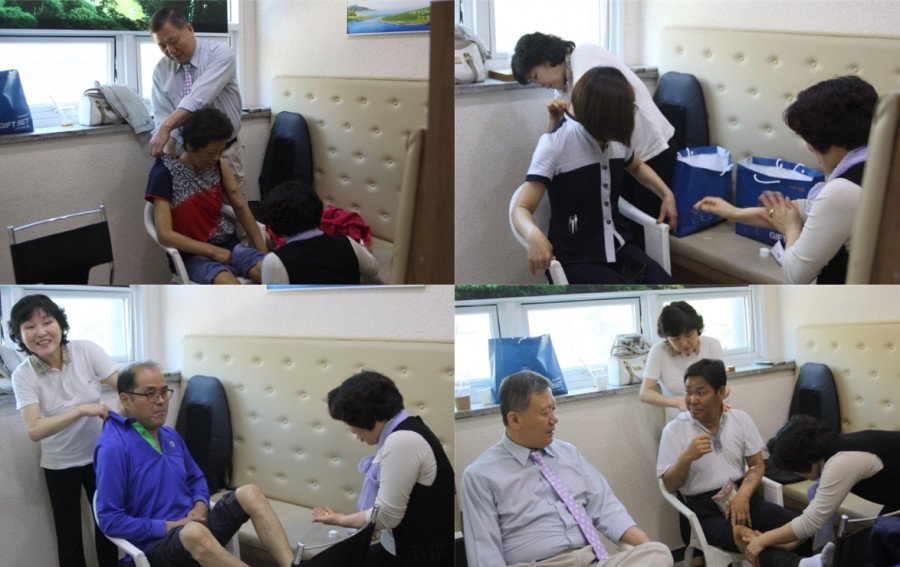 프로폴리스 글루코사민크림 맛사지로 뭉친 근육을 달래주고 준비해간 선물을 나누며 교제의 시간을 가졌다.