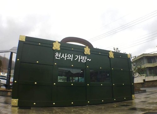 △'천사의 가방'은 선교사의 철재 가방을 재해석한 작품으로, 선교사의 교유고가 의료, 봉사의 상징으로 대형 조형물로 만들었다.