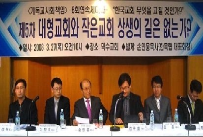 기독교사회책임 주최로 지난 3월 27일 서울 성북동 덕수교회(담임 손인웅)에서 열린 세미나에서 손인웅 목사(한목협 대표회장)는 대형 교회들은 대교회주의에 빠져 있고, 작은 교회는 교인들의 영적인 욕구를 제대로 채워 주지고 못하고 있다 고 지적했다.