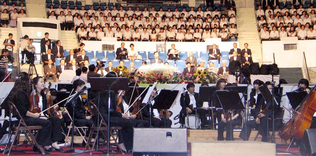 장로교회가 연합과 일치를 다짐하는 행사를 가졌다. 한국장로교총연합회(회장:김요셉 목사ㆍ이하 한장총)에서 주최한 〈장로교의 날〉에서 26개 장로교단 지도자들과 성도들은 칼빈의 정신으로 장로교가 하나 될 수 있기를 뜨겁게 기도했다. 칼빈의 탄생일인 7월 10일, 장충체육관에서 열린 〈장로교의 날〉은 장로교단들의 축제이자 칼빈을 재조명하는 행사이며 사회를 섬기는 교회의 의무를 다할 것을 다짐하는 자리였다. 각 교단의 교단기 입장에서부터 강연회와 예배, 제언 및 선포, 축하음악회 등으로 진행돼 체육관을 메운 참석자들의 주목을 끌었다. 2부 행사에서는 칼빈의 전통 개혁주의 예배가 그대로 재현됐다. 설교를 맡은 김삼환 목사(예장통합 총회장)는 “하나님은 주님 안에서 하나 되는 것을 기뻐하신다”면서 한국 장로교가 하나 되어 한국 교회의 본이 되자고 강조했고, 성찬식을 맡은 최병남 목사(예장합동 총회장)는 “장로교 26개 교단이 한 자리에서 주님의 떡과 피를 나누는 의미 있는 일”이라며 경건한 성찬을 집례했다. 뿐만 아니라 홍기숙 여성분과위원장의 대회선언 낭독과 7인위원의 실천강령선언 발표는 이 행사를 단순한 장로교의 집안 모임으로 끝내지 않기 위한 한장총의 결연한 의지를 보여줬다. ‘회개’, ‘희망’, ‘실천’, ‘통일’, ‘한장총의 미래’라는 주제를 가지고 진행된 3부에서는 그동안 장로교의 분열을 회개하면서 앞으로 한 마음을 가지고 사랑을 실천하며 사회의 연약한 부분을 끌어안는 장로교단이 될 것을 강조했다. 대회선언문에서는 “서로의 차이점을 넘어서서 함께 할 수 있는 공통점을 찾아가며 화합함으로 서로를 사랑하는 첫걸음을 내딛고자 한다”고 발표하며 “한장총은 한국 교회의 연합과 한국 사회의 거국적 출애굽을 선도할 견인차의 역할을 이 시대에 감당할 것”이라고 선언했다. 또한 목사, 장로, 권사, 청소년 등 각 집단을 대표하는 7인위원은 하나님의 공의를 구현할 것, 개혁 신학에 근거한 균형 잡힌 청소년으로 성장할 것 등 자신의 위치에서 주님의 사랑을 실천할 것을 다짐하기도 했다. 이어 최선규 아나운서의 사회로 진행된 축하음악회는 박종호, 남궁송옥을 비롯한 CCM 가수들과 유명 성악가들이 참여해 대미를 장식했다. |