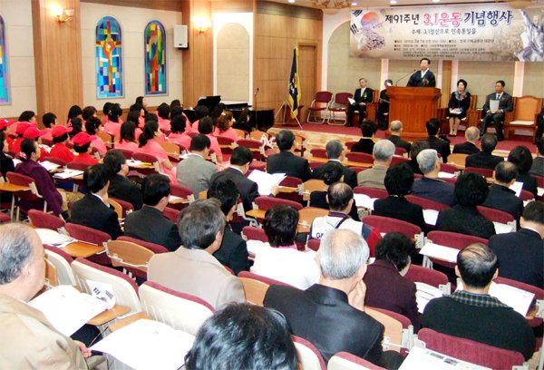 대한민국 3.1회(총재 이태희목사)가 3월 1일 한국 기독교회관 대강당에서 제91주년 3.1운동 기념행사를 개최했다.