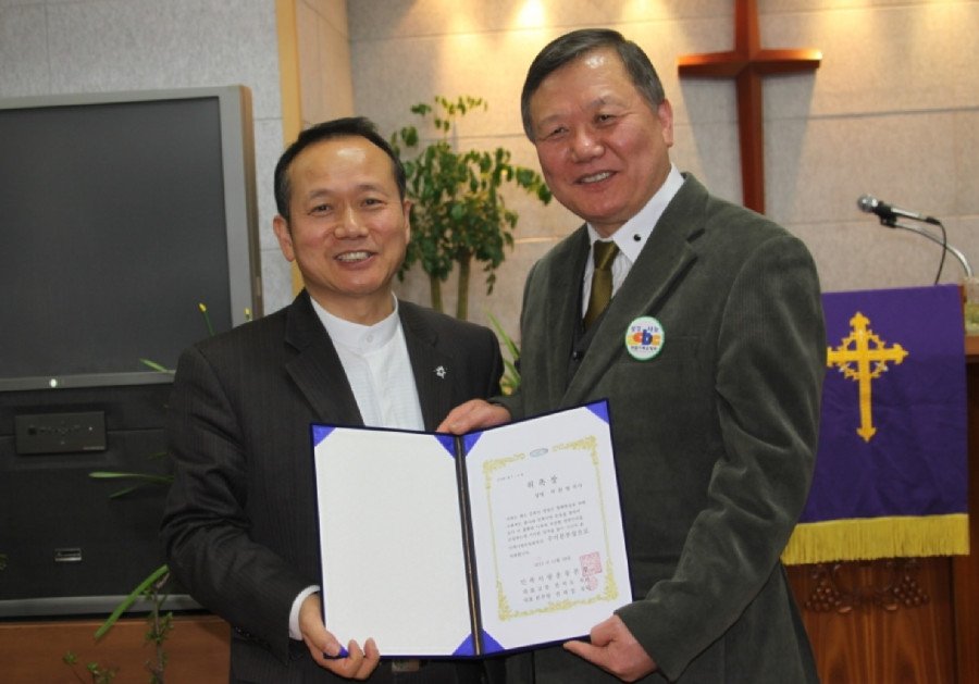 민족사랑 운동본부에서 박찬영 목사님과 이원희 목사님께 위촉장을 전달했다.