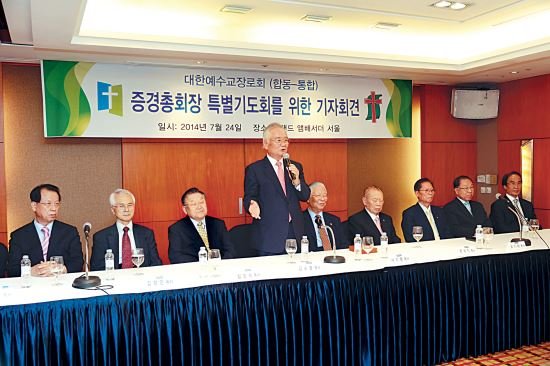 예장 합동·통합 증경총회장회는 24일 서울 중구 동호로 그랜드 앰배서더 서울 호텔에서 기자회견을 열고