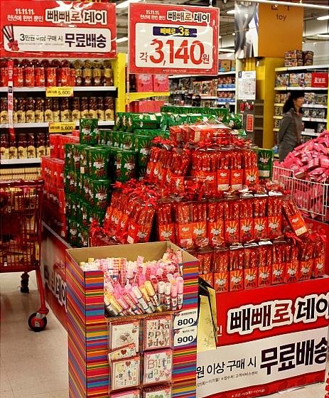관련업계에 따르면 11월 11일 빼빼로 데이를 앞두고 지역 대형마트들은 매장에 '빼빼로 데이' 특별 행사장을 마련, 판촉에 열을 올리고 있다.
