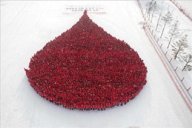 대한적십자사는 백석대학교 학생 3천6명이 세계 헌혈자의 날을 맞아 23일 강원도 평창 휘닉스파크에서 '인간 핏방울 모양 만들기' 기네스 기록에 도전해 성공했다고 24일 밝혔다.