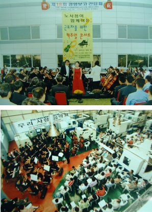 가슴 벅찬 기쁨과 환희로 삶의 변화를 주는 풍요로운 음악이 근로자들의 가슴속에 감동을 심어주고 이로 인해 기업과 예술의 만남이 요즘 최고의 절정을 맞는 등 뜨거운 사랑을 받고 있다.