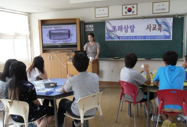이번 교육은 첫째 날 ‘친한 친구되기, 친구관계 살펴보기, 친구에게 다가가기’, 둘째 날 ‘대화하는 친구되기, 대화 잘 이끌어 나가기, 도움 주는 대화 배우기’ 등의 순서로 상담의 기초적인 기법부터 실제 현장에서 활용하는데 도움이 되는 전문적인 전략들에 관해 배워보는 시간을 가졌다. 특히 이번 교육은 이론적인 내용 뿐 아니라 풍부한 사례를 바탕으로 학생들 스스로 내담자, 상담자가 되어 연습을 해보는 시간을 가져 학생들로 하여금 또래상담자로서의 책임을 느낄 수 있도록 하였다. 총 12시간의 이번 교육을 수료한 학생들은 또래상담 수료증을 받고 또래상담사로서의 역할을 수행하게 된다.