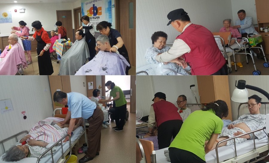 장기입원중인 환우들에게 이, 미용 및 맛사지함은 물론 실로암선교단의 색소폰연주와 찬양으로 즐겁고