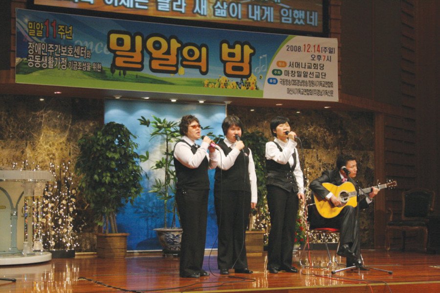 장애인보호센터와 공동생활가정 기금 조성 마창밀알선교단(단장 진병진 목사)은 창립 11주년을 맞아 지난 12월 14일 오후 7시 서머나교회에서 ‘밀알 11주년 밀알의 밤’을 가졌다. 장애인선교의 필요성 인식과 장애인주간보호센터와 공동생활가정 기금 조성을 위해 개최한 이번 행사는 1천여명이 참석한 가운데 성료했다. 김종성 목사의 기도로 시작해 시각장애인 이재서 총재(세계밀알 총재, 한국밀알선교단 설립자)의 간증과 기차사고로 양팔을 잃은 백은영 자매의 찬양과 간증, 하늘소리 국악찬양단, 동방현주의 공연이 펼쳐졌다.