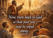 19 그러므로 너희가 회개하고 돌이켜 너희 죄 없이 함을 받으라 이같이 하면 새롭게 되는 날이 주 앞으로부터 이를 것이요