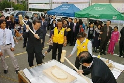 또한, 대한적십자사 인천부평지부협의회 회원들이 인절미 만들기 체험 행사를 지원해 주셨습니다. 외국인 형제들은 물론 온 성도가 전통 떡매치기 등 인절미 만들기 과정에 참여하고 직접 만든 인절미를 나누며 아름다운 교제의 시간이 되었다.