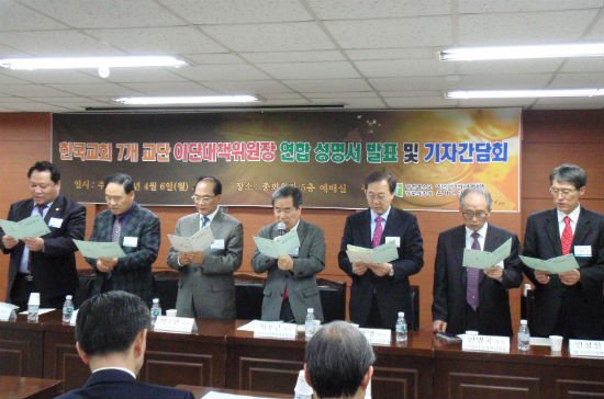 한국교회 7개 교단 이단사이비대책위원장들은 6일 오후 서울 대치동 합동 총회회관에서 기자회견을 열고, 이단대처에 관한 연합 의지를 확고히 다졌다.