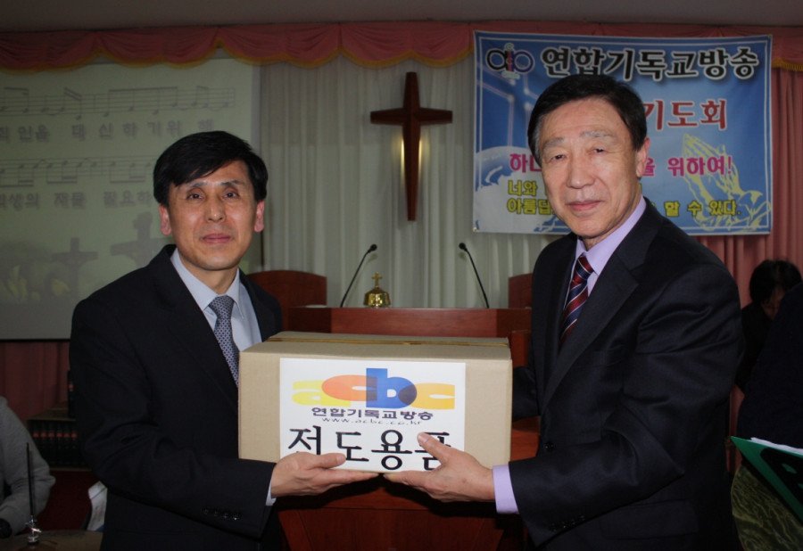 오직예수교회에 연합기독교방송에서 선교용품을 전달했다.