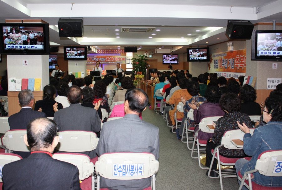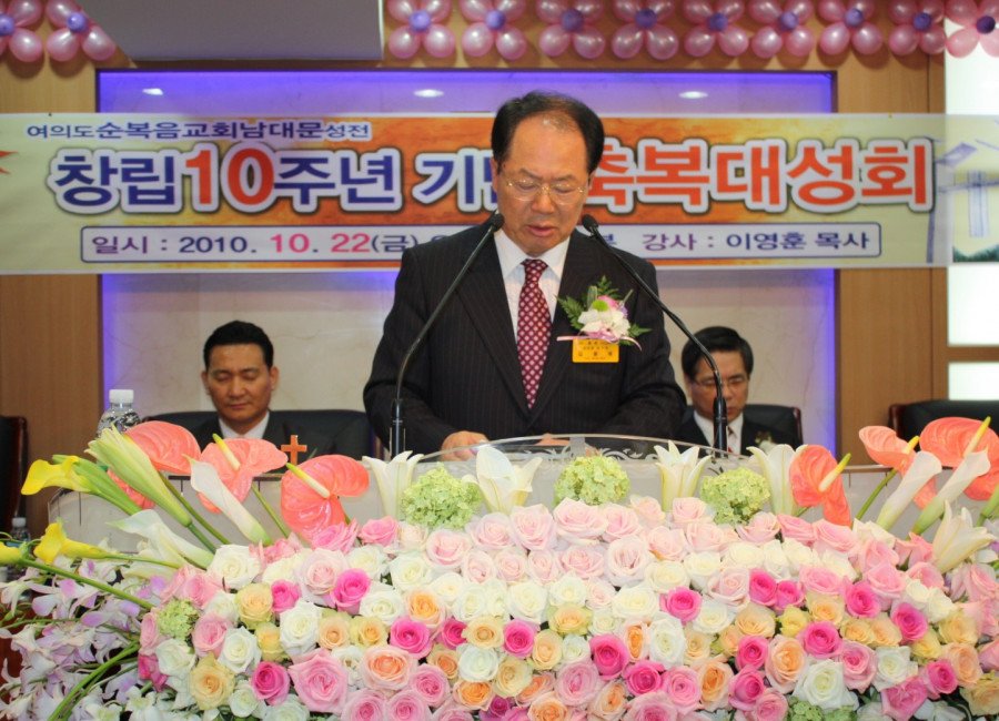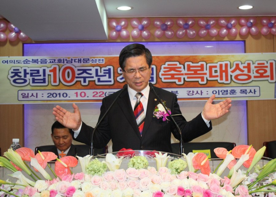 여의도순복음교회(당회장 :  이영훈 목사)는 지교회인 남대문성전(담임 : 백근배 목사) 창립 10주년 기념 감사예배로 서울시 중구 남창동 9-15 금오빌딩 7층 본당에서