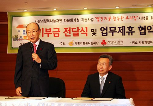 저소득층의 생계비, 의료비 지원, 집수리와 전국의 지역아동센터의 시설 개ㆍ보수 사업을 진행해 온 (재)사랑과행복나눔은 서울특별시건강가정지원센터, 녹번종합사회복지관, 푸른시민연대 등 3곳의 사업수행기관과 함께 다문화가정지원사업에 적극 나서기로 했다.