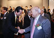 “한경직 목사님은 약한 분, 한국교회는 너무 강해져”김명혁 목사, 9주기 설교… “초교파적으로 기릴 것” 당부도 ▲한경직 목사 9주기 추모예배를 드린 후 김명혁 목사(좌)와 이철신…