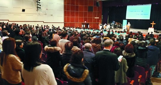 2000여명의 성도들은 2017년 12월까지만 해도 서쪽으로 10㎞ 떨어진 파라무스의 번듯한 예배당에서 예배를 드렸다. 하지만 지금은 학교 강당에서 예배를 드리고 있다.