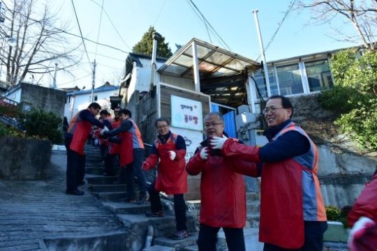 조환익 사장과 허기복 대표는 연탄배달을 마친 후 독거노인들이 살고 있는 20가구를 직접 방문해 쌀과 라면 등 생필품을 전달하고 위로와 격려의 말을 전했다.
