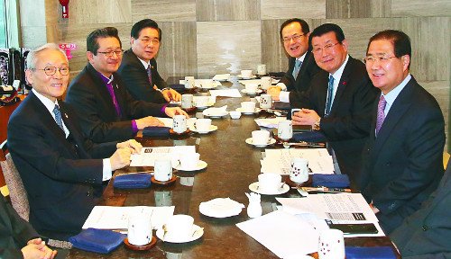 주요 7개 교단장은 5일 서울 여의도 국민일보빌딩에서 모임을 갖고 한교총 정관 등을 논의했다.