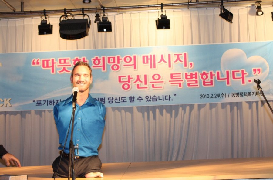 소망의 전도자 “닉 부이치치”는 호주 태생으로써 양팔과 다리가 없는 선천성 장애를 가지고 태어났으나 굳센 믿음으로 장애를 극복하며 대학에서 회계학과 재무학을 전공하고 현재 미국에 거주하면서 사회복지단체를 설립 등등 전 세계를 순회하며 활발한 사회 봉사활동과 희망을 전하는 살아있는 보배로 많은 이들의 지주가 되고 있다.