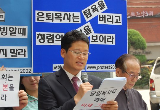 정 목사는 교회개혁실천연대 부설 교회문제상담소에 접수되고 진행된 사례들의 발표를 통해 담임목사직 매매가 특별한 경우가 아니라 한국교회에 만연한 악행임을 증언했다. 1인 시위자인 김성학 목사는 “한국교회에 들풀처럼 번지고 있는 담임목사직 매매 행위는 목사의 책임임을 통감하며 교회에는 자성을, 사회에는 용서를 구하는 맘으로 목사직을 반납한다”고 말한 후 “그러나 정체성은 목사이므로 여전히 목사로서 살아가겠다”고 밝혔다.