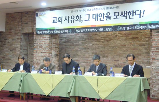 이날 대화마당은 종교개혁 494주년을 기념해 ‘교회 사유화, 그 대안을 모색한다’는 주제로 열렸다.