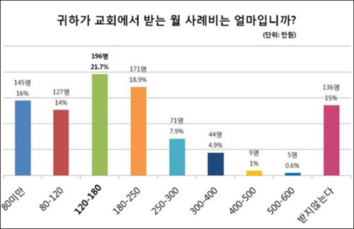 아예 사례비를 받지 않는다는 목회자는 15.0%(136명)였다.