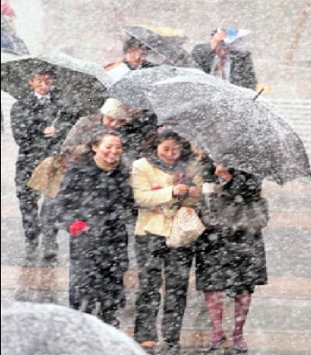 그러나 오전 서울·경기지역에 갑작스럽게 눈발이 거세지고 보기 드문 함박눈이 내리기 시작했다.
