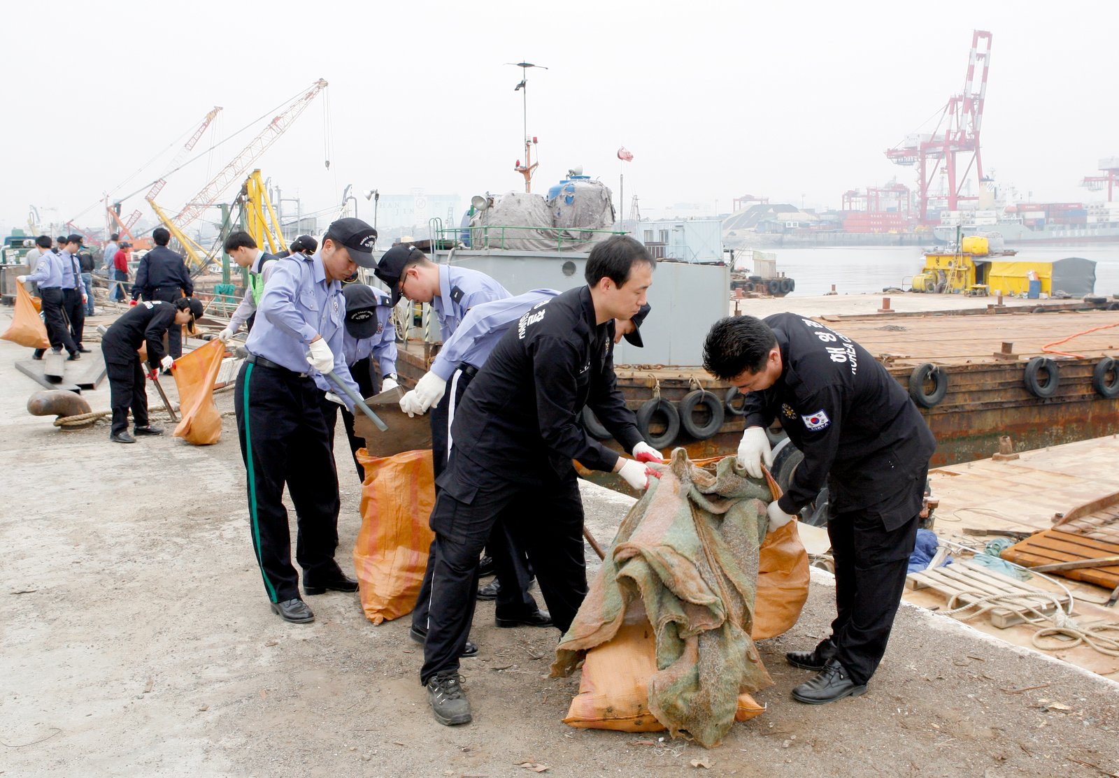 인천해양경찰서는 『깨끗한 바다 만들기』녹색성장 실현의 일환으로 15일 오전 10시30분쯤 인천 남항부두에서 바닷가 대청소운동을 실시했다.
