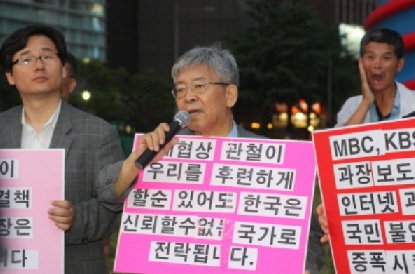 선진화국민회의 사무총장인 서경석 목사가 13일, 촛불집회에 반대하는 1인 시위를 펼치겠다는 입장을 밝히고 서울 청계광장에 모습을 드러냈다.
