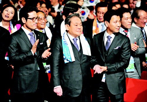 왼쪽부터 정병국 문화부 장관, 이건희 IOC 위원, 김재열 대한빙상연맹 회장