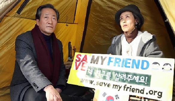 새누리당 정몽준 전 대표는 22일 오전 효자동 중국대사관 앞에서 중국의 탈북자 강제 북송에 항의하며 단식농성에 들어간 자유선진당 박선영 의원을 찾아 격려했다.