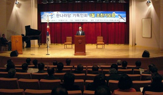 이날 예배에는 김충환 의원, 강명순 의원, 주광덕 의원 등 한나라당 의원과 100여 명의 성도들이 참석했다.