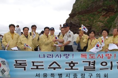 서울 중랑구의회(의장 이성민)는 지난 27일 독도 현지를 방문해 일본 독도 영유권 주장에 대해 강력히 대응할 것과 독도 영유권 침탈야욕을 중단할 것을 촉구하는 규탄대회를 가졌다.