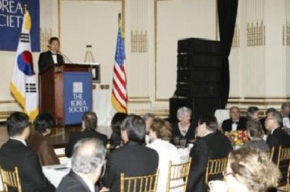 이명박 대통령은 4.15(화) 19:00-21:45까지(현지시간) 뉴욕 플라자 호텔에서 코리아 소사이어티(Korea Society)가 주최하는 연례만찬에 참석, 새 정부의 대외정책 및 비전에 대해 연설했다.