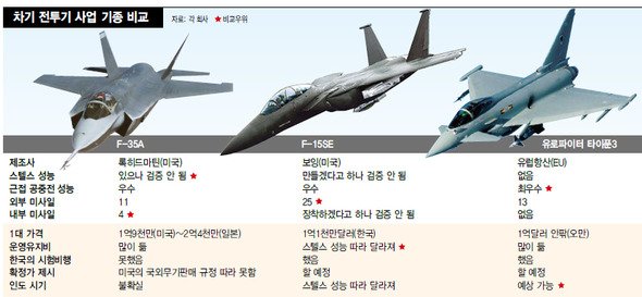 미국의 록히드마틴(F-35A)과 보잉(F-15SE), 유럽항공방위우주산업(EADS·