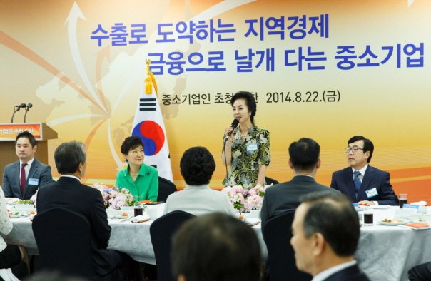 박근혜 대통령이 22일 오후 부산국제금융센터(BIFC)에서 열린 중소기업인 초청 오찬에 참석하고 있다.