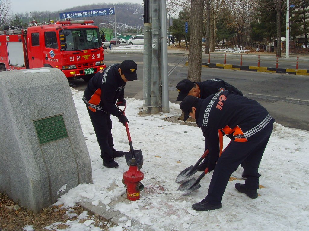 서창119안전센터장(소방위 : 고광옥)은 “폭설 및 계속적인 한파로 소화전의 동파 방지 및 주변의 눈이 얼어붙지 않도록 관리. 유지에 만전을 기하고 있다며, 시민들도 ‘내집. 내점포 앞 눈치우기’에 자발적으로 동참해 신속한 소방차량 출동 및 소방용수 확보에 앞장서 달라.”고 당부했다.
