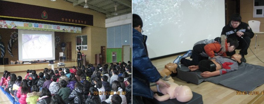 ♨ 인천공단소방서(서장 : 오병석)는 겨울철을 맞아 지난 8일 연수구 동춘동에 위치한 동춘초등학교를 방문하여 초등학교 5학년 학생 80여명을 대상으로 심폐소생술 및 응급처치 요령 등 교육을 실시했다.