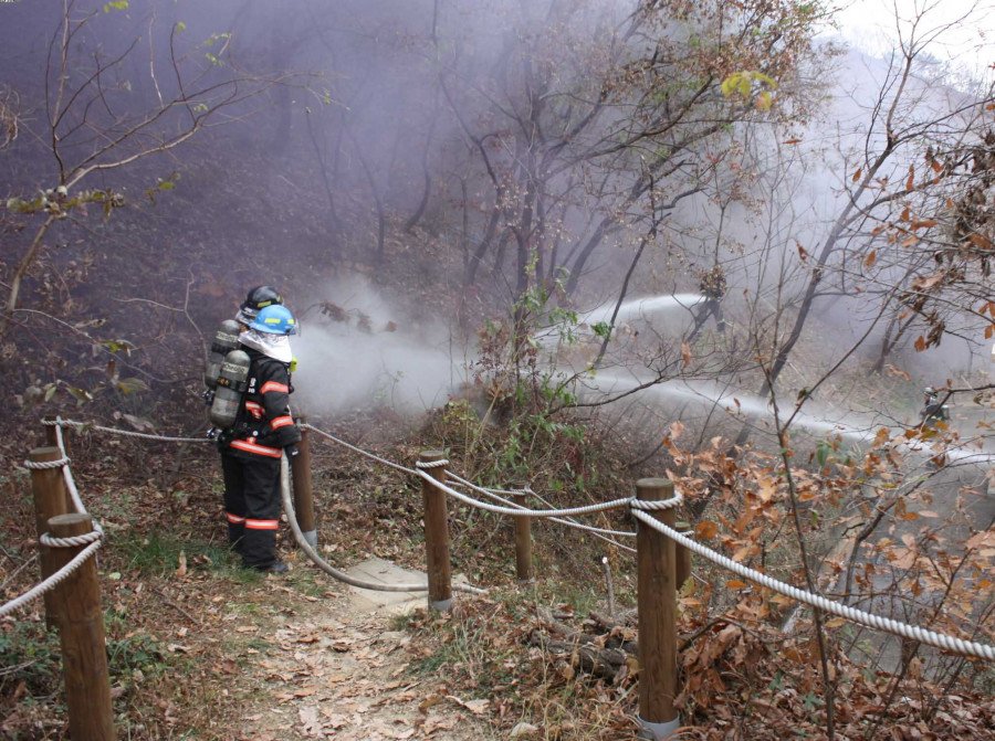 ♨ 이번 훈련은 가을철 산불조심기간(11.1~12.15)을 맞아 남동구 만수동에 소재한 거미산을 훈련 장소로 정하고 소방공무원 및 유관기관. 단체에서 관계자 378명과 진압장비 21대가 동원됐다.