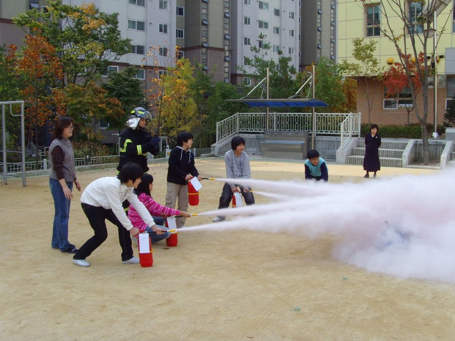 ♨ 이번 교육은 2010년「화재와의 전쟁」원년의 해를 맞아 학생들이 어려서부터 안전생활화 습관이 정착될 수 있도록 평소 지도교사 및 학생들이 화재예방에 대한 관심과 응급상황시 대처 능력을 함양하고자 실시하게 되었다. 생활주변에서 발생할 수 있는 각종 안전사고의 유형과 예방요령, 긴급상황시 119신고 요령, 연기. 피난훈련 및 옥내소화전 체험, 소화기 사용법 등에 역점을 두고 체험 위주로 실시했다.