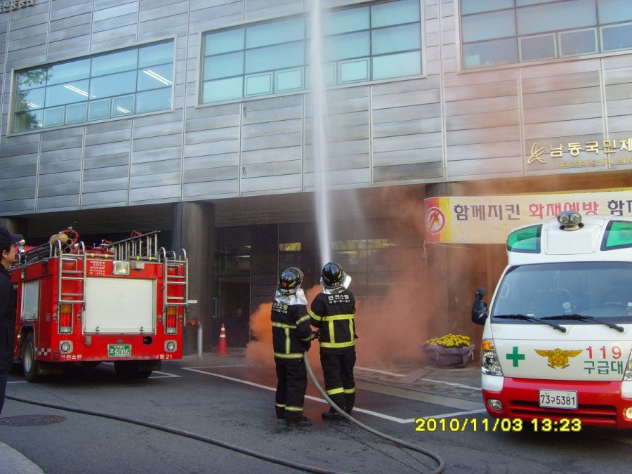 ♨ 인천남동소방서 만수119안전센터는 3일 오전 남동국민체육센터(남동구 만수4동 소재)에서 전직원을 대상으로 “공공기관 합동 소방훈련”을 실시했다.