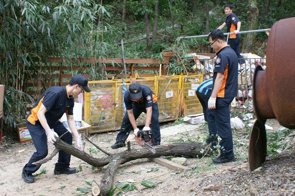 ♨ 비번일임에도 봉사활동에 참여한 한 소방관은 “큰 태풍으로 큰 나무들이 쓰러지는 등 많은 피해가 있었지만 직원들과 함께 나와 땀흘리며 봉사활동을 하니 보람을 느낀다” 고 소감을 밝혔다.