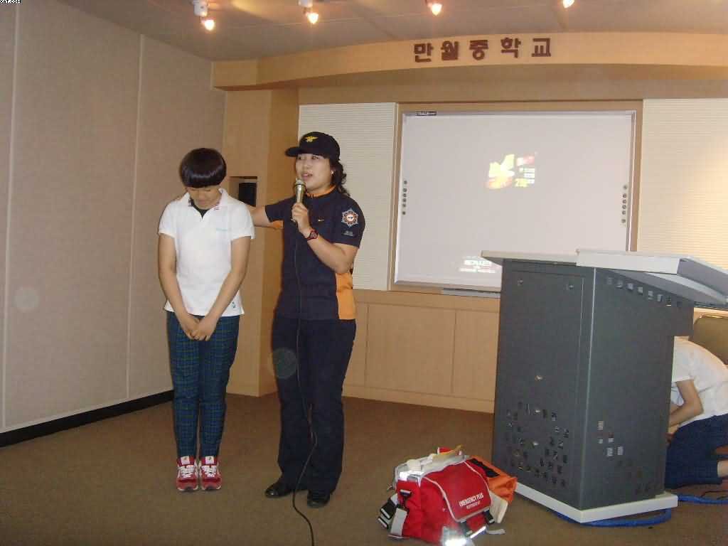 ♨ 이날 교육. 훈련은 학교생활 중 발생 가능한 각종 안전사고 예방법과 화재에 대한 경각심 및 소방안전문화 조기 정착을 위하여 실시하게 되었으며, 주요내용으로는 ▲프리젠테이션을 활용한 소방안전 교육『우리는 안전 청소년』 ▲가상의 화점을 설정한 피난 . 대피훈련 ▲학생 및 관계자의 소화기 및 옥내소화전 사용 체험 교육 ▲소방차 방수 체험 ▲지진발생시 대처요령 등을 바탕으로 직접 경험하고 느낄 수 있도록 체험중심으로 진행하였으며, 청소년들이 체험을 바탕으로 가정 및 학교에서 안전지킴이 역할을 수행할 수 있는데 주안점을 두고 교육 ․ 훈련을 실시했다.