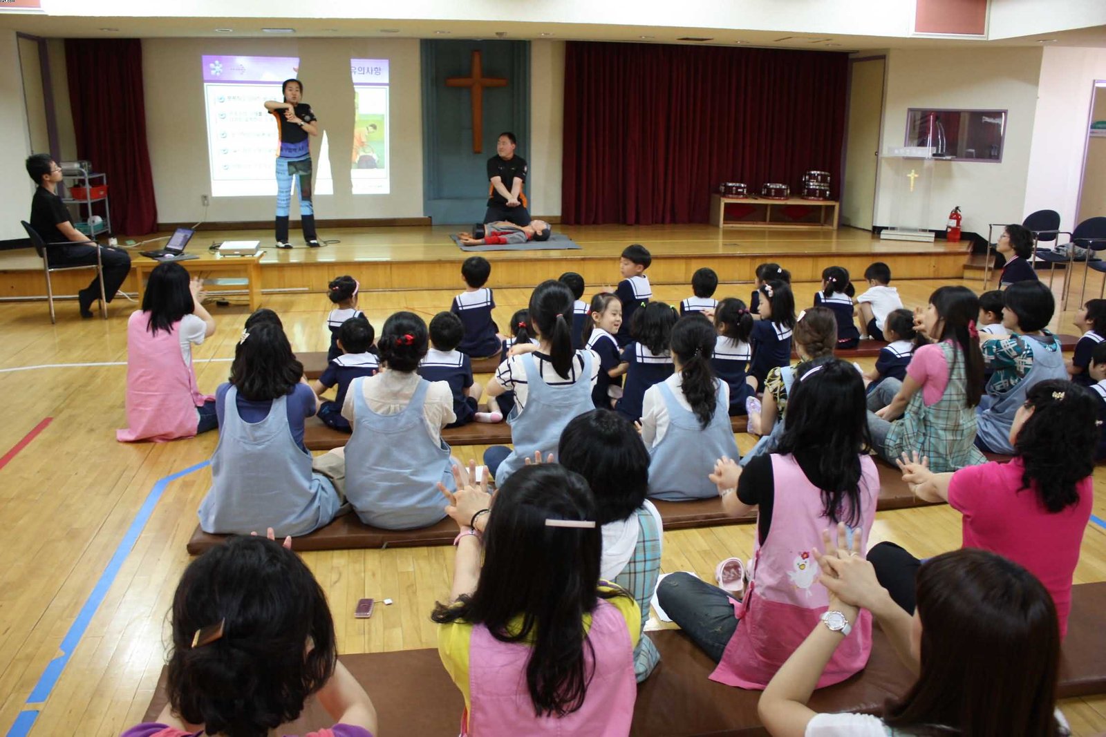 ♨ 이날 순복음유치원 교직원들은 ▲화재예방 및 대피요령 ▲마네킹을 이용한 기도폐쇄 응급처치법(하임리히법) ▲심폐소생술(CPR) 실습을 통한 신속한 대처능력 배양 등 화재 및 응급 상황에 대한 전반적인 대처 요령을 배울 수 있었다.