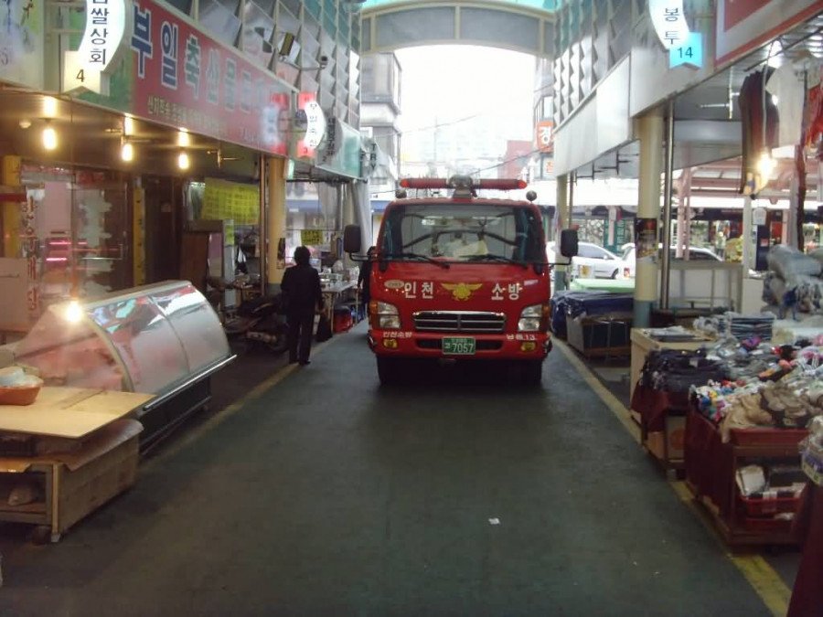 ♨ 재래시장은 불법 주. 정차, 좁은 도로와 차광막 및 노점상 등으로 소방차 진입의 어려움, 화재시 고가사다리차 등에 의한 소화활동의 어려움 등 대형화재에 의한 인명피해로 이어질 수 있는 위험성이 항상 내재되어 있다.