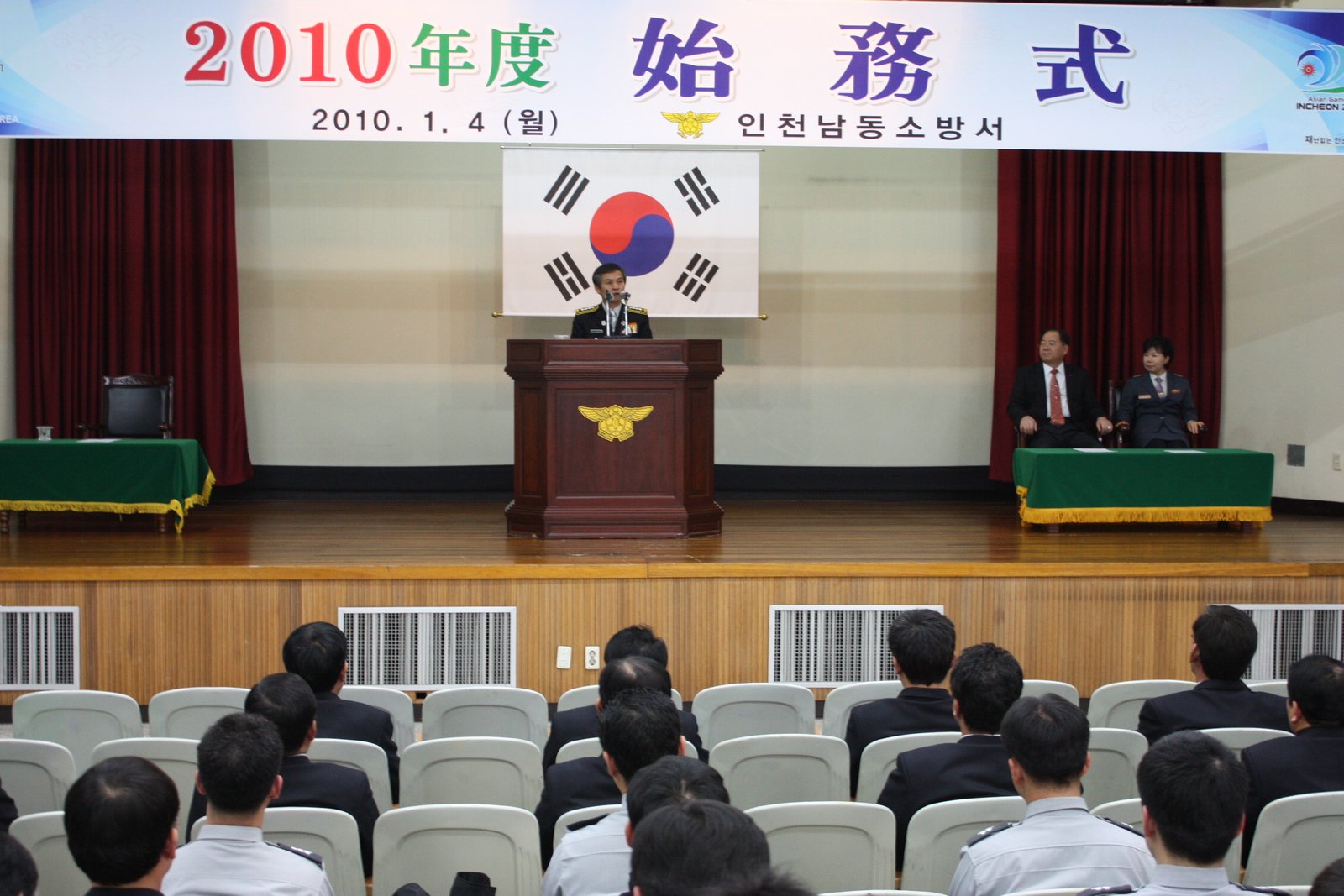 ♨ 인천남동소방서(서장 : 정충환)는 지난 4일, 소방공무원과 의용소방대원 120여명이 참석한 가운데 새해의 각오와 결의를 다짐하는 2010년 시무식 행사를 갖고 직원간의 새해인사로 첫 업무를 시작했다.