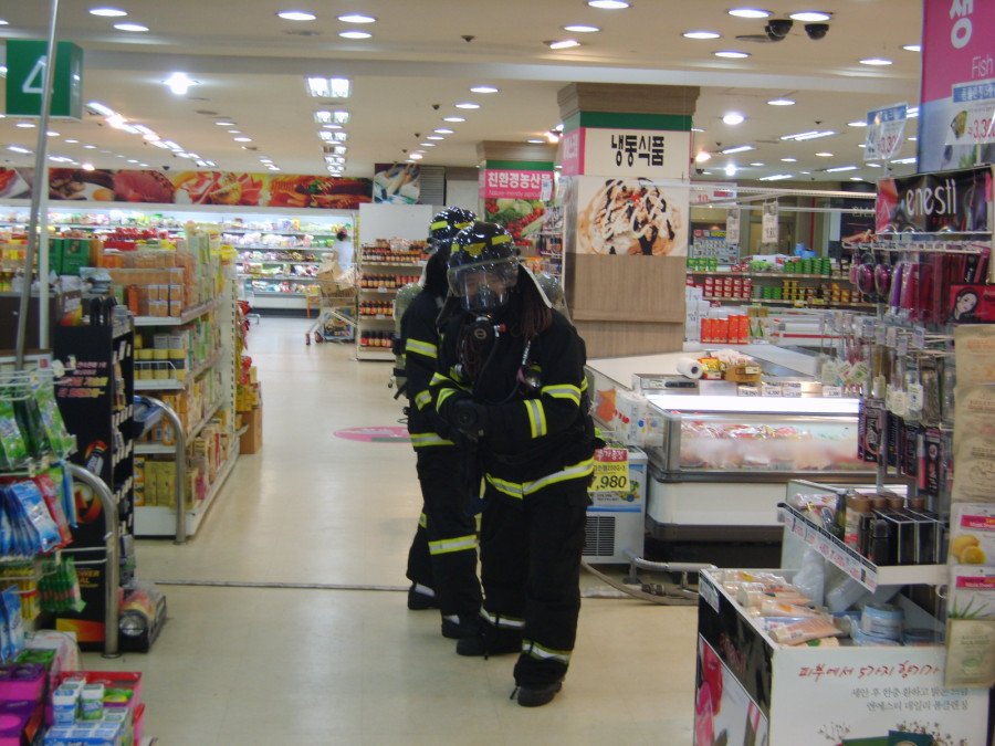 ♨ 이날 훈련은 주요 유관기관과의 연락망 구축 및 현지대응능력 향상과 관계인ㆍ종사자가 주관하는 자체 소방훈련의 내실화를 기하기 위해 실시하게 되었다. 훈련 상황은 추석 연휴로 많은 인파가 밀집된 실내에서 원인 미상의 화재가 발생하여 건물내 다량의 농연과 유독가스 분출로 주변으로 연소확대 되어 인명피해가 우려되는 상황을 가상해 자위소방대원과 합동으로 ▲자위 소방대 상황 전파 및 피난대피훈련 ▲주변지역 출동로 확보 및 화재진압훈련 ▲연소확대 저지 및 인명구조훈련 ▲재난현장 표준작전절차 숙지 훈련 ▲건물 관계자 및 종사자에 대한 화재예방교육 등을 중적적으로 실시했다.
