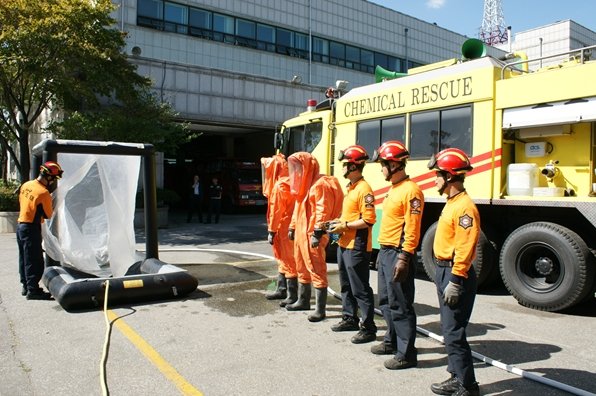 이번 훈련은 ▲ 화학사고 대비 특수 장비점검 및 조작훈련 ▲ 유해화학물질 초기대응훈련 ▲ 시민들의 대피유도 및 안전지대 확보 ▲ 사고처리 후 추가오염방지 개인제독처리 등 특수한 상황에 대처능력을 향상시키는데 중점을 두고 실시했다.